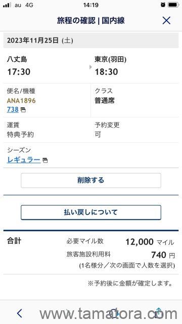 | 0 | 航空券 12,000マイルでとった特典航空券です。 |