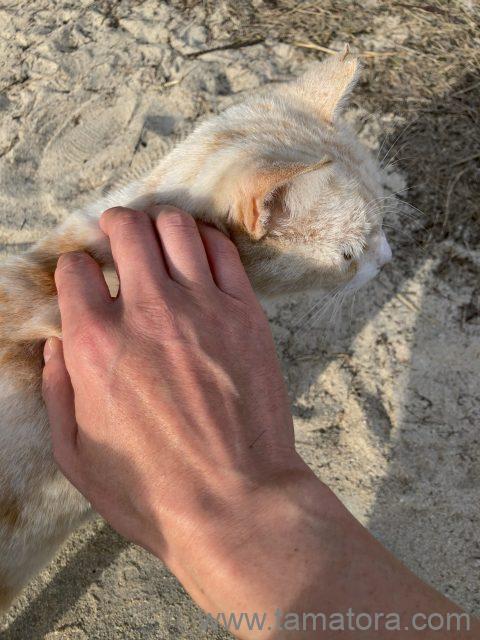 人馴れしている子もいて、しゃがんで見ていると近づいてきて、撫でることを要求してきました。この子も耳がカットされていますから、去勢されていますね。