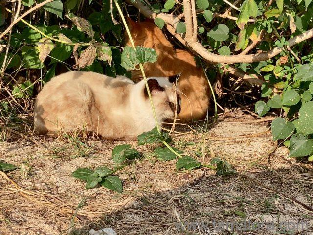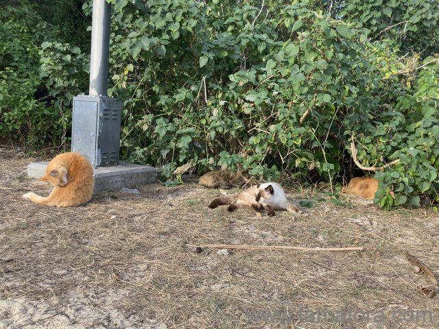 海岸に近づくと、昨日のイベントはすっかり終わっていて、海岸は静かです。フラっと歩いてみると、猫たちが沢山いました。耳がカットされているので、世話をしている方がいるようです。