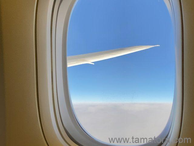 那覇=羽田はもっと後方の42Hでした。お隣の方がすぐに寝てしまったため、映る範囲は狭いですが窓外の景色を撮らせてもらいました。