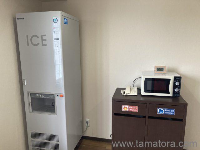 ランドリールームに、飲料自販機、製氷器、電子レンジ、洗濯機、乾燥機と、長めに滞在する場合でも問題のない設備だと思います。そうそう、電子レンジがあるのをすっかり忘れてました。隣のローソンでお弁当を買ってきて、温めるということもできるんですよね。