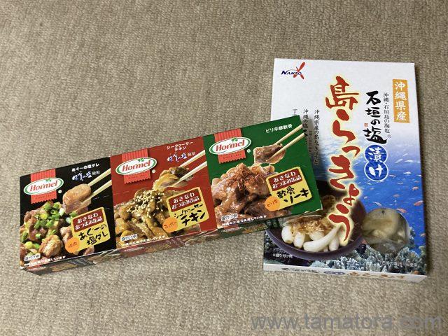 ANA FESTA那覇空港店で買ったもの。自分用です。以前、お土産用に同じ三連缶詰を買ったのですが、自分でも食べたくなって買いました。
