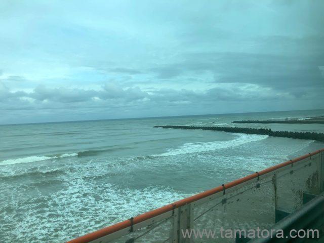 バスは海沿いの高速道路を走るため、途中で海の景色を見る事ができました。とはいっても、曇り空のもとで荒れる波、と言った景色ではありましたが。