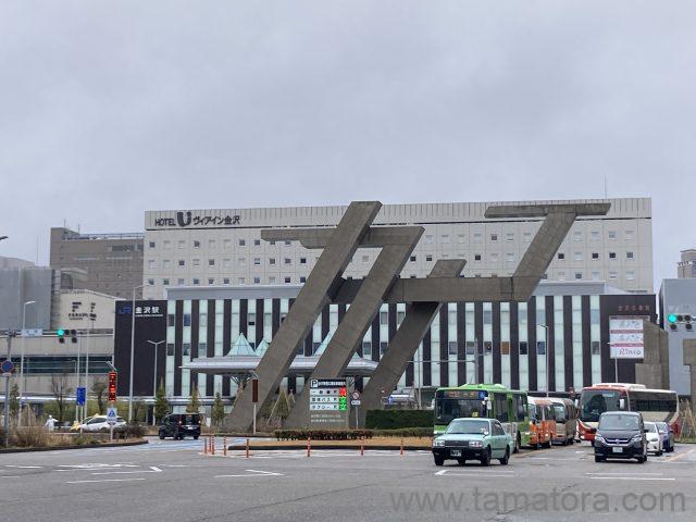 片仮名のカナザワをデザインしたモニュメントが駅前にドーンと鎮座していました。そういえば、東口の鼓門ができる前は、この景色が象徴的な金沢駅の景色だったと思います。