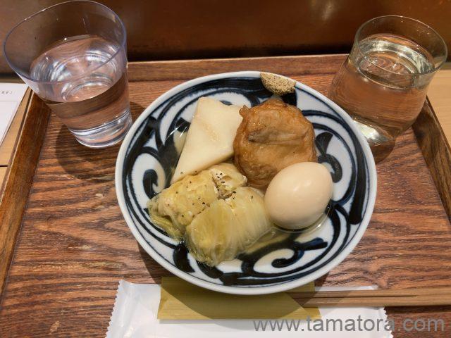 はんぺん、ごぼ天、普通の卵、ロール白菜。あれ!? ごぼ天はやめておこうと思っていたのに、頼んじゃいました。でも、美味しいからオッケーです。
