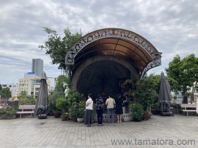 そして献金箱があり、50kVNDと書かれていましたから、50kVND札を入れました。この点もGoogle mapの口コミで、強制的に入場料を取られたと書かれていましたが、この建物を維持するのだってお金がかかります。50kVND程度を払うのは当然だと思いますね。口コミを書いた人たちは観光して遊ぶお金はあるのに、たった50kVNDの献金はできないようです。