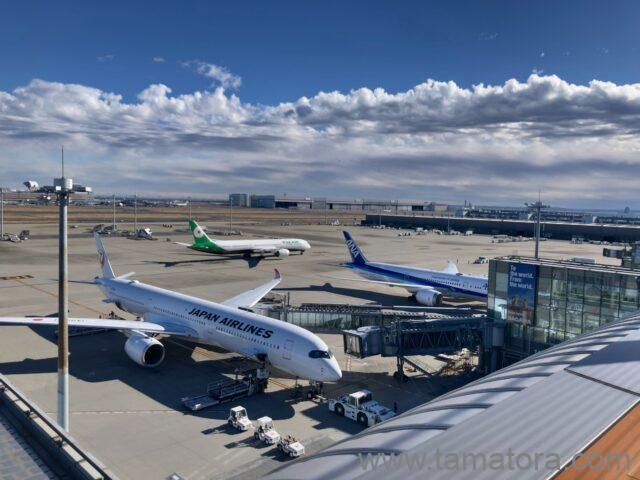 第一と第二は航空会社で棲み分けしていますが、第三ターミナルは会社関係なく国際線が集まっています。ですので、ANAとJALが並ぶ姿を見ることもできました。